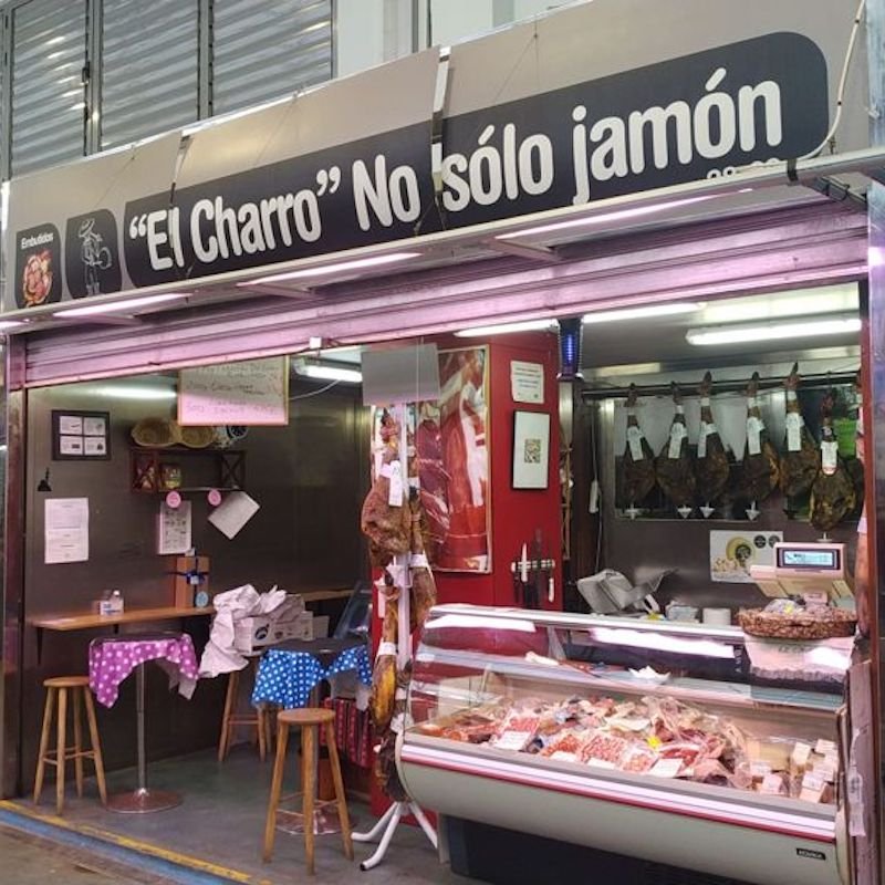 Selección de ibéricos de Salamanca, corte a cuchillo y asesoramiento cercano en el Mercado de Santa Florentina.